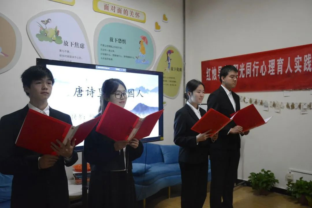 为丰富校园生活,加强心理健康韧性,威廉希尔中国官网于10月31日晚在如心楼113沐育听心心理驿站举办“我青春 我健康”为主题的中华经典诵读大赛活动。本次活动由心理驿站指导教师乔雪,金莲如、郑倩两位同学代表担任评委,心理驿站全体员工干事共同参与。