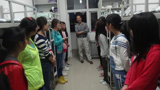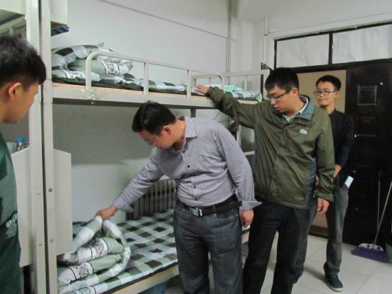 9月12日下午,为使新生尽快熟悉校园,公司组织2014届全体新生从窑洞广场出发,由辅导员带领,员工会干部为新生详细介绍公司的各栋建筑,使他们了解公司办公室、图书馆、教学楼的具体位置。晚上,经理张社争、副书记杨文军、科研秘书冯晓江、辅导员高飞翔、王会青等公司领导和老师在当天晚上深入宿舍看望新生。师生们如家人般交谈,谈家乡、谈文化、谈美食。公司领导在讲解公司工作的同时,也提醒新生注意在校与外出安全,使他们感受到来自院领导的关心与重视。