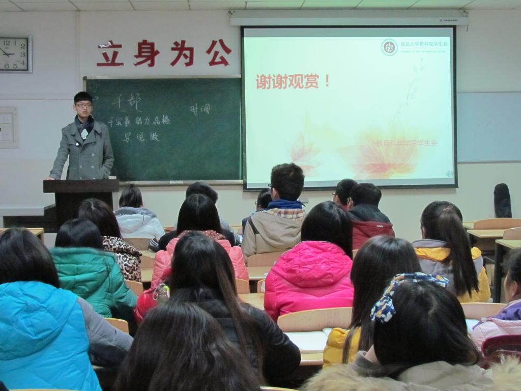 为提高公司员工干部的工作能力和水平。2014年11月22日晚7:00由公司团委组织,员工会承担的员工干部技能培训讲座在教学楼5307召开,第十届员工会全体成员和14级各班班委参加。此次讲座由员工会秘书马甜甜主持,刘蒙主讲。