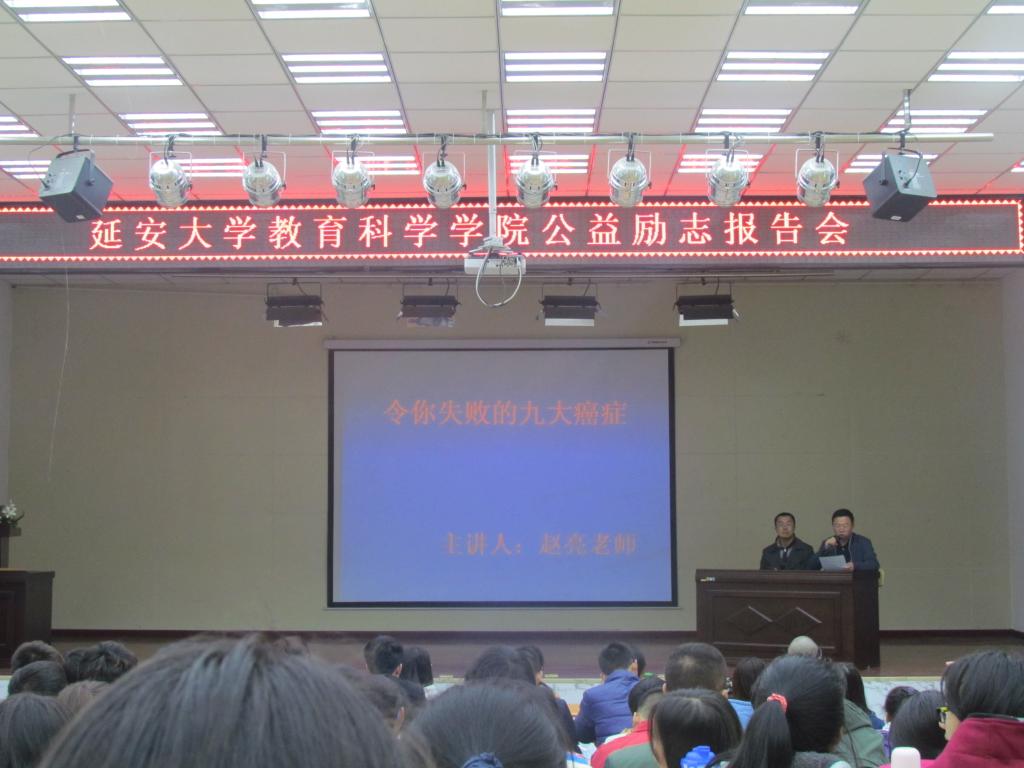 4月1日晚,公司邀请员工“点亮激情,照亮人生”的导师赵亮在外语公司小礼堂为公司14级员工作题为《令你失败的九大癌症》的励志报告会,报告会由公司党委副书记杨文军主持。