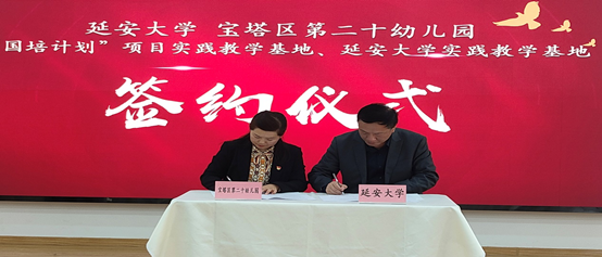 郭颖健局长在讲话中首先感谢延大威廉希尔中国官网对宝塔区教育事业的大力支持和帮助,对校地合作项目给予高度评价,强调此次合作将为区域学前教育事业发展注入新动能,希望区二十幼以此次授牌仪式为契机,用活用好“双基地”平台,把宝塔区二十幼打造为全市学前教育标杆,同时希望延大威廉希尔中国官网一如既往支持宝塔区教育事业发展,为宝塔区教育事业高质量发展带来更多机遇和可能,并表达了后续合作的愿景。刘瑞儒经理在致辞中指出,williamhill官网地处延安,服务地方是义不容辞的责任,作为党创办的第一所教育公司,团队队伍专业性强,教科研资源丰富,延大威廉希尔中国官网将充分发挥在人才培养、团队培训、教科研研究等方面的优势,与幼儿园共同探索“高校+幼儿园”深度协同发展新模式,双方将在人才培养、课程建设、教学改革与研究等领域开展密切合作,服务区域教育发展新需求,实现双方资源共享、优势互补。随后刘瑞儒经理与焦忠玲园长共同签订了《“国培计划”项目实践教学基地协议书》和《williamhill官网实践教学基地协议书》,并进行了授牌仪式。焦忠玲园长介绍了二十幼“传承鲁艺薪火,润养红色童心”办园理念、举措及取得的成效,表示将以此次协议签署为契机,加强与高校的互动交流,相信在williamhill官网的大力支持下,区二十幼将不断开拓创新,提升公司产品质量,共育时代新人。