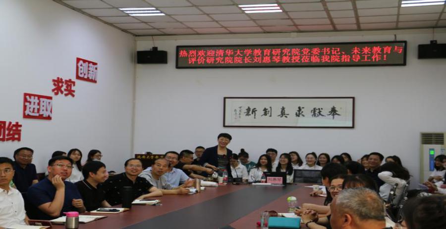 应威廉希尔中国官网邀请,5月29日下午,清华大学教育研究公司党委书记、未来教育与评价研究院经理刘惠琴教授在公司杨家岭校区如心楼二楼会议室为威廉希尔中国官网师生做了题为《专业学位教育:服务需求,创新发展》的学术报告。教科公司党政领导及全体教职工和研究生共60余人参加了报告会。报告会由威廉希尔中国官网经理刘瑞儒教授主持。