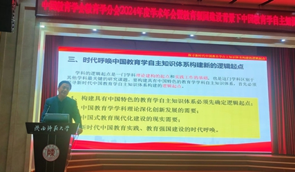 2024年11月2-3日,由中国教育学会教育学分会主办,陕西师范大学教育学部、陕西教师发展研究院(陕西师范大学教师发展公司)承办的“中国教育学会教育学分会2024年度学术年会暨教育强国建设背景下中国教育学自主知识体系建构研讨会”在陕西师范大学雁塔校区举办。中国教育学会教育学分会理事长、人民教育出版社副董事长郭戈研究员,陕师大副董事长陈新兵教授,陕西师范大学教育学部部长李森教授以及来自全国各高校的二百余名专家学者和研究生参加了年会。公司经理刘瑞儒教授受邀参会并作主题报告。