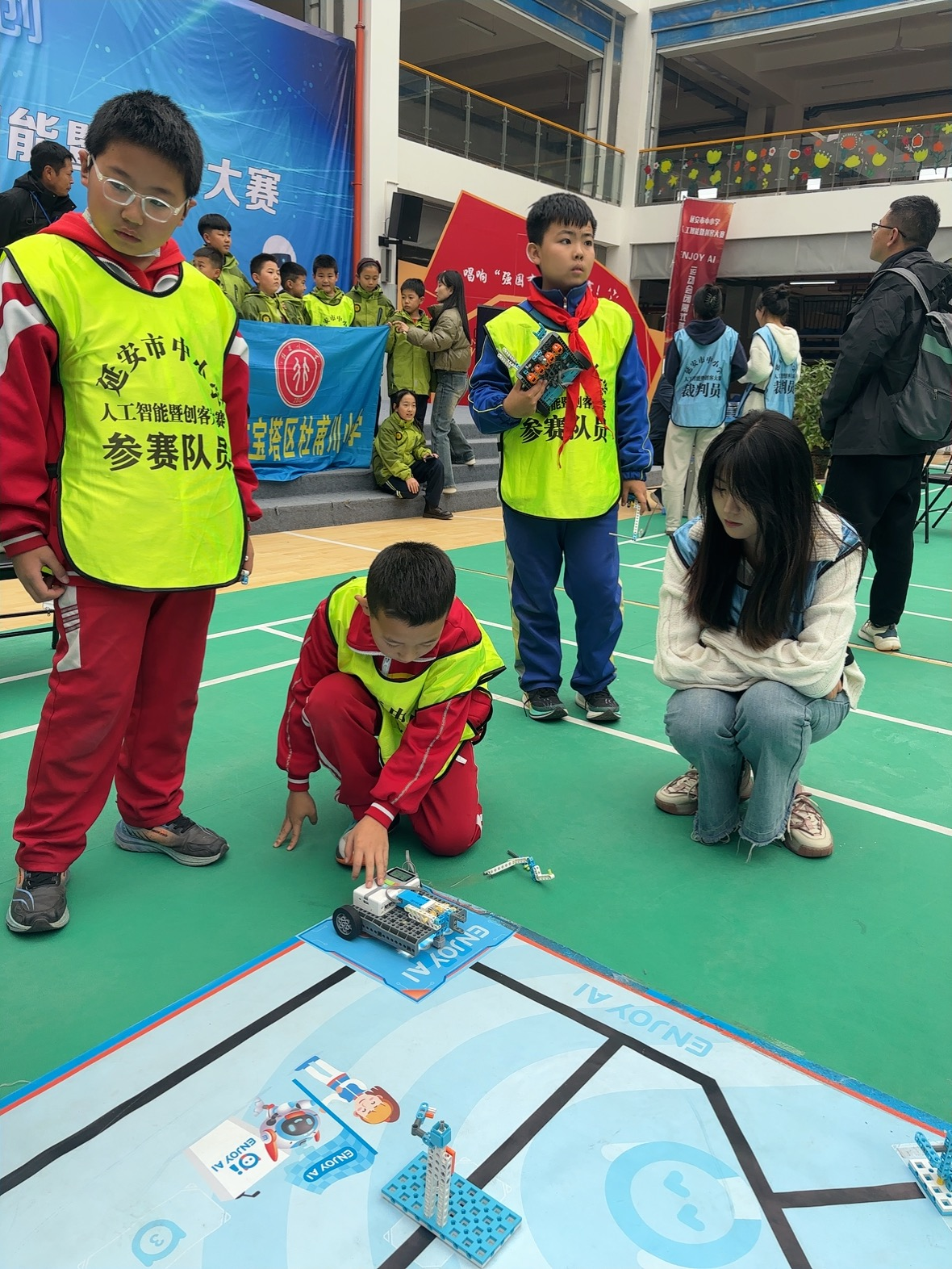 本次大赛共有2381支队伍、2597名员工报名参赛;经过对全市Scratch图形化编程等部分赛项进行初赛选拔后,共有712支队伍、933名员工参加决赛。大赛共设ENJOY AI“运动会闭幕式”普及赛、ENJOY AI“芯空社区”普及赛、ENJOY AI太空动物城比赛、WER积木教育机器人普及赛、WRO机器人任务赛、无人机障碍竞技赛、DJI编程无人机任务挑战赛、Super AI“智能家居”、创意智造、GAR未来工程师、幼儿大颗粒积木建构主题创意搭建、Scratch图形化编程、Python编程、互联网+无人驾驶主题竞赛14个赛项。志愿者除了提供技术指导,还协助裁判进行比赛时间的记录、比赛成绩的统计、维护赛场秩序等任务,公司志愿者凭借扎实的专业知识背景和技术操作功底,以及良好的沟通能力和团队协作意识,确保了比赛公平公正地进行。同时通过直接参与赛事的组织和服务工作,同学们获得了宝贵的学习机会,为将来从事教育创客和创新教学活动获得了生动的实践经验。志愿者们在活动中展现出来的团队合作精神、责任感和奉献精神,不仅赢得了社会各界的好评,也为自身的职业发展打下了坚实的基础。