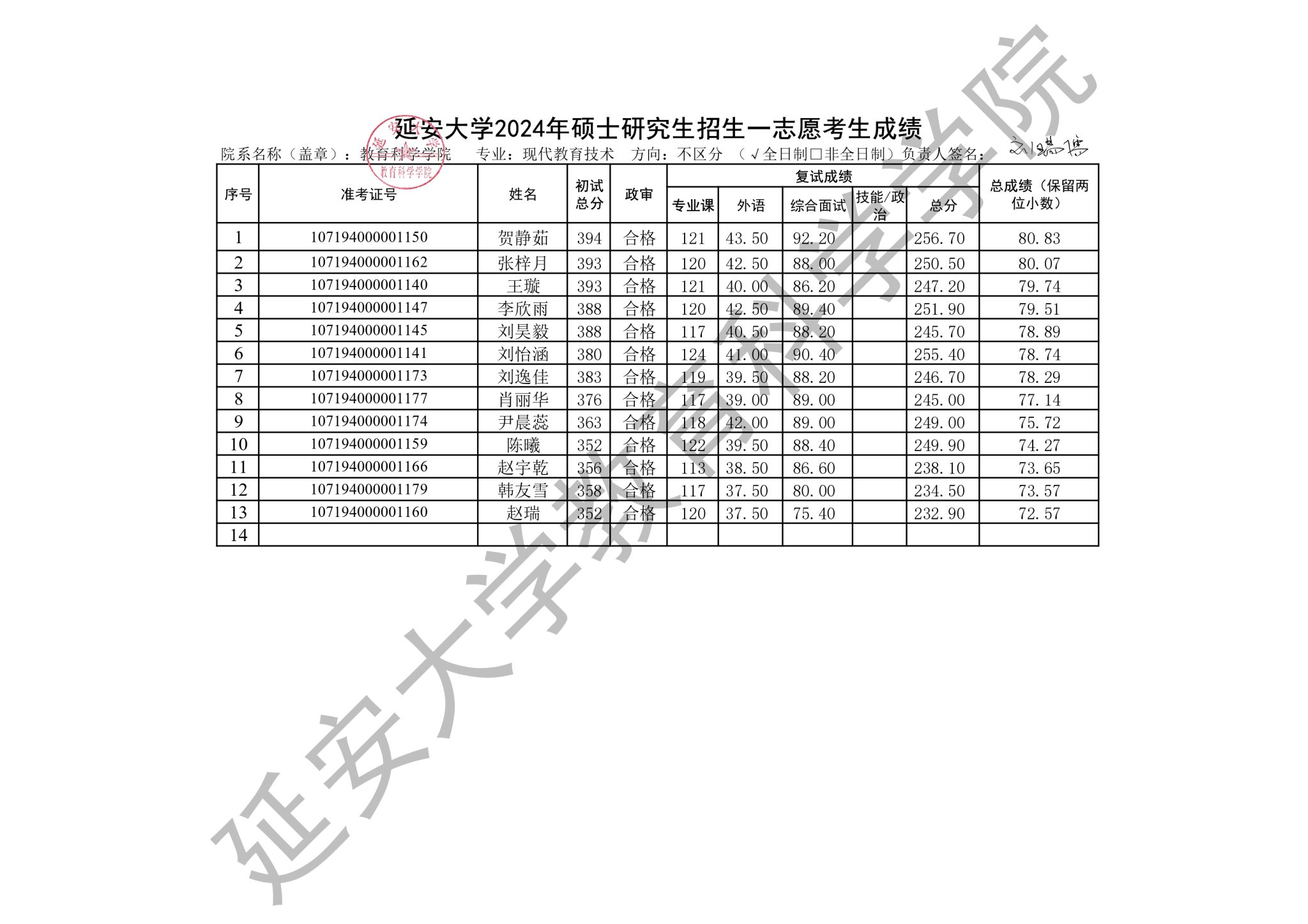 依据公司2024年硕士研究生复试工作实施方案,于2024年3月29日至3月31日的一志愿考生复试工作已圆满结束,现将具体复试成绩予以公示,公示时间为十个工作日,于公示期间如有疑议,请联系: