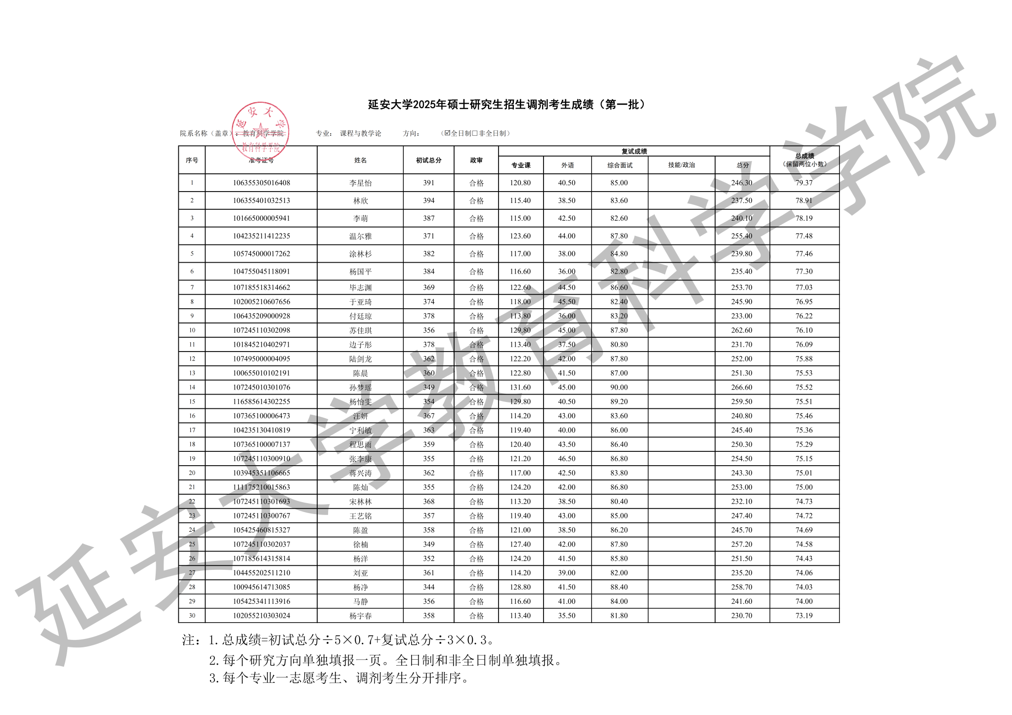 公司2025年硕士研究生招生第一批调剂考生复试工作已经结束,经研究生院核准,现将考生成绩予以公示,公示期为十个工作日。